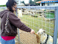 It was raining a bit, so we just scoped out places we would want to come back to when the weather is better. We spotted goats! Actually, there were rabbits, hens, and roosters too. We saw some people feeding the goats, some of whom brought veggies from home. Joey and I just picked up fallen leaves on the ground and fed them. And boy, can the goats eat. They eat, and eat, and eat, and eat, and etc. They're cute!