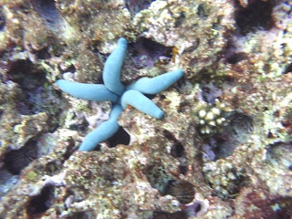 Saturday, we went back to Maeda Flats with the same friend Joey went with earlier, and two other friends who were newbies to snorkeling like me. What an experience! Despite the fact that I would freak out because I didn't know how to use my fins properly, and I hated when my feet couldn't reach the floor, I loved it! I got better towards the end, but only because I decided to ditch the fins. The two newbies went a bit farther out than I did, while Joey and his friend went out past the waves, where the coral dropped off. They even saw a jellyfish, eek!