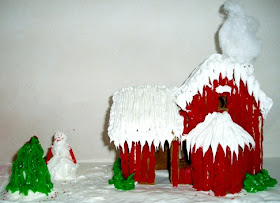 He even made a frosted roof with smoke coming out! And a snowman! And Christmas tree! And bushes! And his looks like a Victorian style house! As you can see, my art skills are limited.