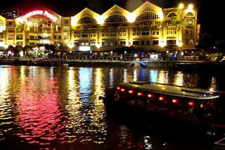 At night, Joey and I headed to Clarke Quay for dinner at Quayside Seafood, which was an outdoor cabana-like restaurant alongside the Singapore River. Clarke Quay is a popular location in Singapore, with a lot of restaurants, nightclubs, and floating pubs.