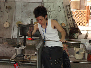 Next, we went to the Yomitan Glass Factory where they gave us a demonstration of glass art.