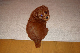 Keiko's getting so big now, well, "big" for a toy breed. She's big enough, that she learned how to jump on the couch this week. And I hope I don't jinx myself, but she's been holding in her pee and poop throughout the night for a few weeks now! Woohoo, no more waking up in the middle of the night to take her out or waking up to a soiled blanket!