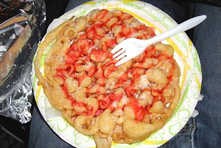 Our strawberry (sauce) funnel cake. It wasn't the same as the Mexican funnel cake at the Del Mar Fair.